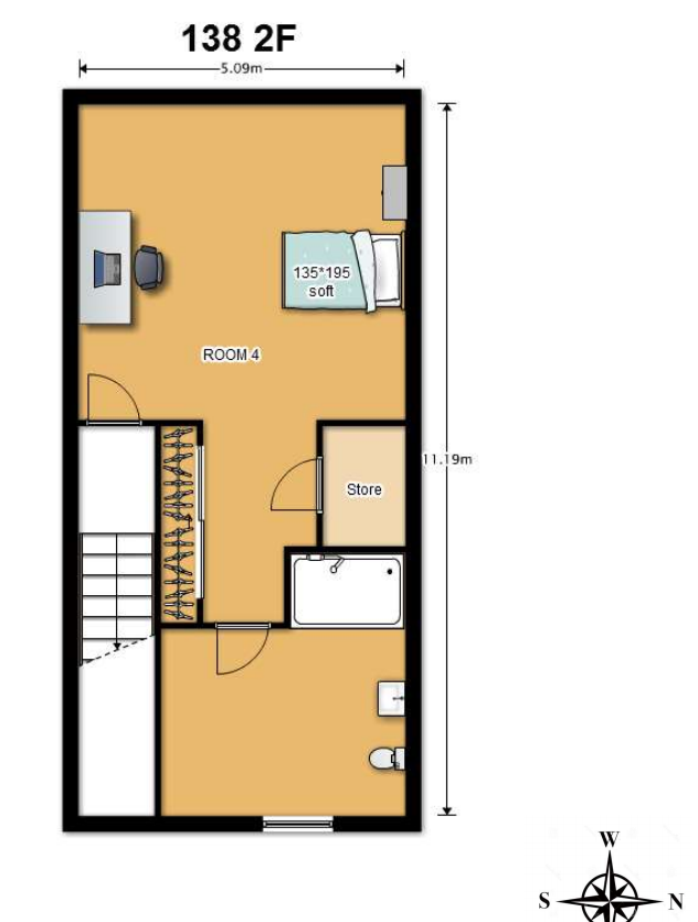Rm3: 135/w ( Single bed with shared bathroom )